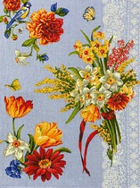 Полотенце вафельное БУКЕТ БМ ГОЛУБОЙ - тюльпаны р 50х60