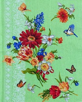 Полотенце вафельное БУКЕТ САЛАТОВЫЙ - гербера р-р 50х60