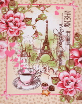 Полотенце вафельное КОФЕ ПАРИЖ - цветы р-р 50х60