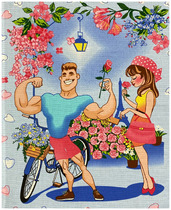 Полотенце вафельное 35010 - 1 ДЕНЬ ЗАЩИТНИКА ОТЕЧЕСТВА - солдат с девушкой р-р 5