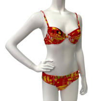 Красный купальник с ярким принтом