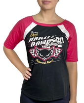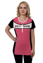 Розово-черная женская футболка Harley-Davidson – свободный силуэт + плотный прин