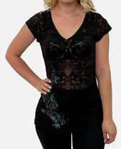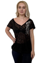 Полупрозрачная женская футболка Harley-Davidson – модный глэм-рок с принтом на б