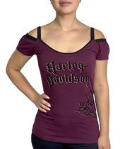 Женская мото футболка Harley-Davidson – стильная шнуровка на плечах + открытая г