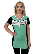 Бирюзовая женская футболка Harley-Davidson – тесьма на плечах, асимметричный при