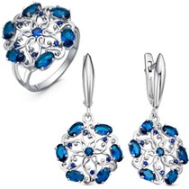 Тип вставки (камня): фианиты; Проба: 925; Металл: серебро; Цвет вставок: синий; Вес: 4.93 г— Описание у На сайте поставщика