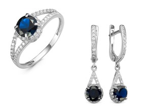 Тип вставки (камня): фианиты; Проба: 925; Металл: серебро; Цвет вставок: синий; Вес: 5.7 г— Описание у На сайте поставщика