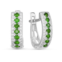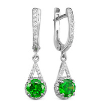 Серебряные серьги с фианитами зеленого цвета - 1184