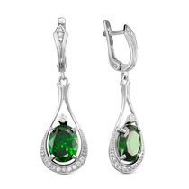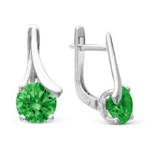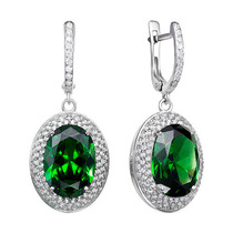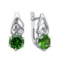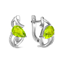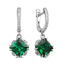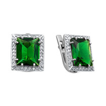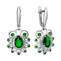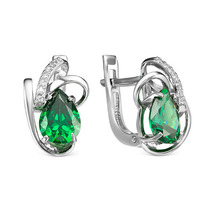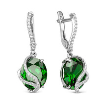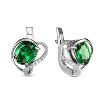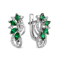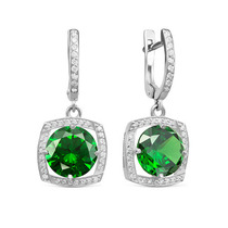 Серебряные серьги с фианитами зеленого цвета - 1274
