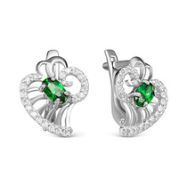Серебряные серьги с фианитами зеленого цвета - 1180