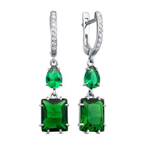 Серебряные серьги с фианитами цвета изумруд - 1181