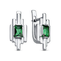 Серебряные серьги с фианитами цвета изумруд - 1183