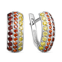 Серебряные серьги с красными,оранжевыми и желтыми фианитами - 1138