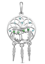 Проба: 925; Металл: серебро; Тип вставки (камня): фианиты; Цвет вставок: синий, зеленый; Вес: 2.49 г— Описание у На сайте поставщика