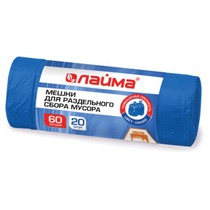 Мешки для раздельного сбора мусора 60 л СИНИЕ, рулон 20 шт., ПНД, 10 мкм, 58х68