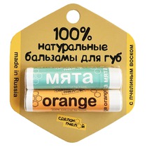 100% натуральные бальзамы для губ "Мята & Orange" 2 штуки
