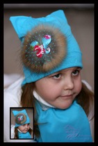 Шапка-кошка БИРЮЗА с композицией Butterfly