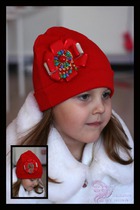 Шапка-кошка КРАСНАЯ с композицией Butterfly