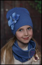 Шапочка удлинённая с орхидеей (св.джинс)
