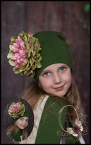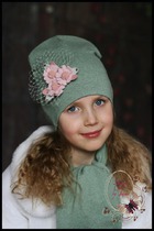 Шапочка удлинённая с красивущим георгином (фисташка)