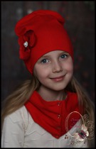 Шапка удлинённая с орхидеей(красная)