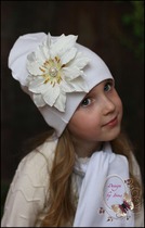 Удлинённая шапка с клематисом (белая)