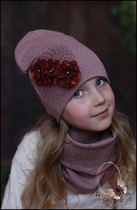 Удлинённая шапка с орхидеей(ягода)