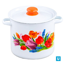 набор 17 белый с деколью на крышке Рамо кастрюли цилиндр.: 3,5л, 5,5л и 8л