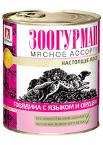 Корм для собак Зоогурман мясное меню говядина с языком и сердцем 750г