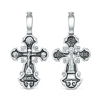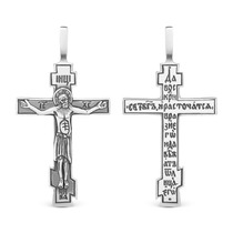 Крест православный из чернёного серебра - Распятие, Николай Чудотворец 3.3 см 92