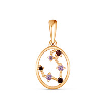 Подвеска из золочёного серебра с нат. аметистом и нат. гранатом - Овен 925 пробы