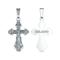 Крест православный из чернёного серебра - Спаси и сохрани 3,7 см 925 пробы 00-00