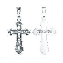 Крест православный из чернёного серебра - Спаси и сохрани 3,6 см 925 пробы 00-00