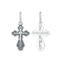 Крест православный из чернёного серебра - Спаси и сохрани 2,4 см 925 пробы 00-00