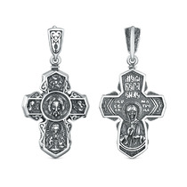 Крест из чернёного серебра с фианитами - Спас Нерукотворный, Николай Чудотворец,