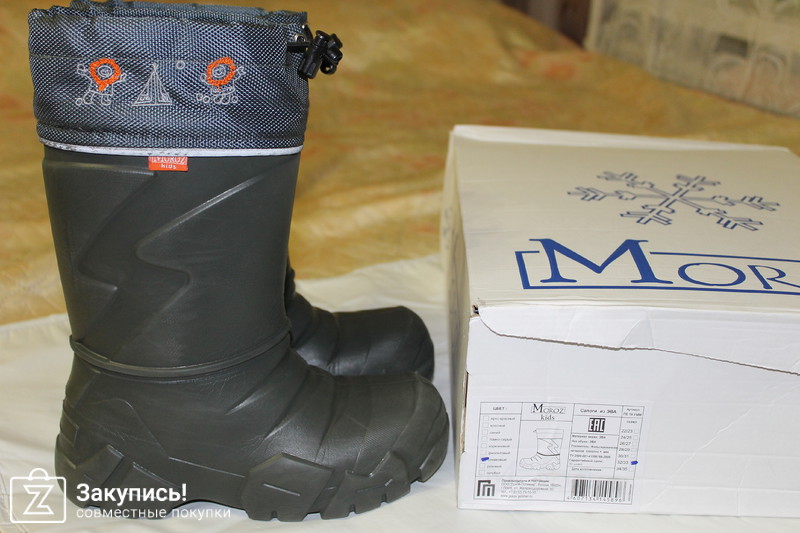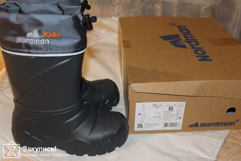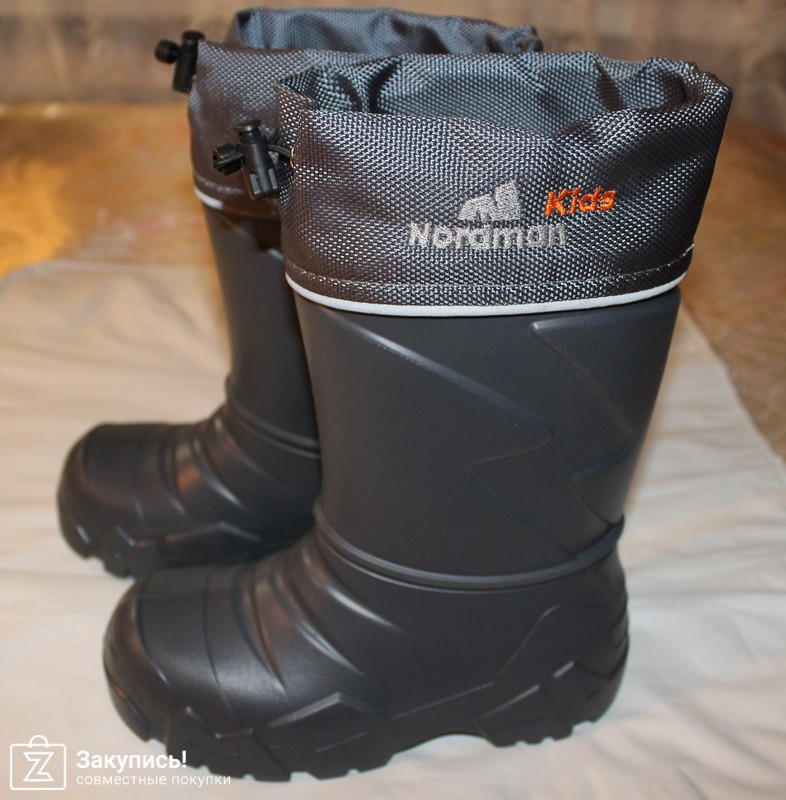 Сапоги из ЭВА детские Nordman Kids (арт. ПЕ-19 УММ) р-р 32-33 цвет темно-серый. Носим с большим удовольствием, голенище достаточно широкое, штанины делаем во внутрь, благодаря резиночкам они не вылазят, на снегогрязь идеально, дома их моем, сушим и штаны не приходится стирать каждый день носим до -5,-7, делаем дополнительно стельку из войлока, кладем под вкладыш и нога не мерзнет, но у нас размер куплен с запасом.