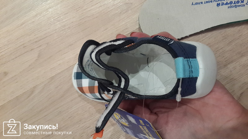 25 размер. По стельке 16,5см. Нога у ребенка 15,5см, внешне видно, что обувь не пропорционально туловищу))) но внутри запас не такой уж и большой кажется. Запаха нет. Упакованы были в фирменную коробку Котофея. Шнурок-обманка, это резинка. На сайте поставщика они темнее, мне попались посветлее. Стелька очень интересная: и дышит, и впитывает))) еще и каркасная.