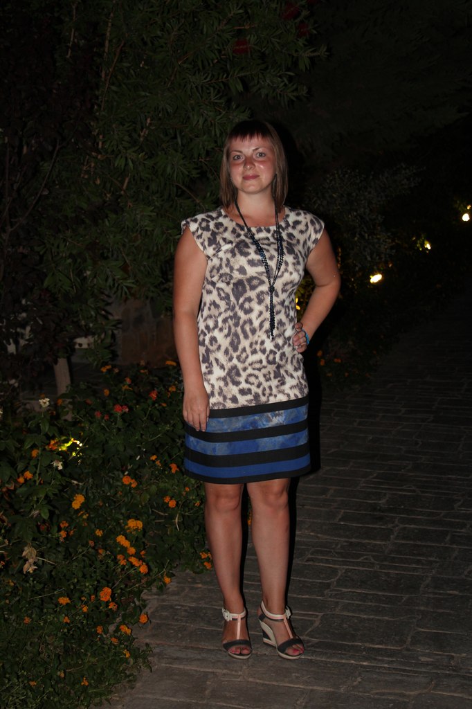 Беру всегда трикотаж 54 размер, грудь 118, бедра 110-112. Это платье можно было и посвободнее взять, почти не тянется. Но ткань очень приятная, как будто натуральная, без всякого блеска, трикотаж плотный, но не толстый. Мне очень платье понравилось. Вот оно на мне![]()