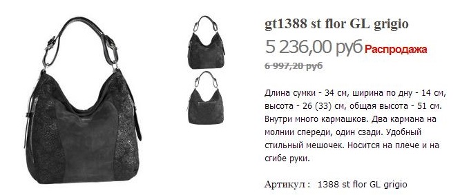 Копирую новость с сайта: По многочисленным просьбам распродажа сезона "Осень-зима 2013-2014" продолжается. На сумки Arcadia, Carlo Salvatelli, Gianni Chiarini, Gironacci, Marino Orlandi, Valentino Orlandi не находящиеся в разделе "Sale" скидка -30%. На сумки Di Gregorio, Fabrizio Poker, Marina Creazioni, Renato Angi, Ripani, Tentazione Due, Tosca Blu не находящиеся в разделе "Sale" скидка -25%. На сумки Bruno Rossi, Cromia, Gilda Tonelli, Giudi (женские), Mastro Rocco и Riccardo Gennari не находящиеся в разделе "Sale" скидка -20%.