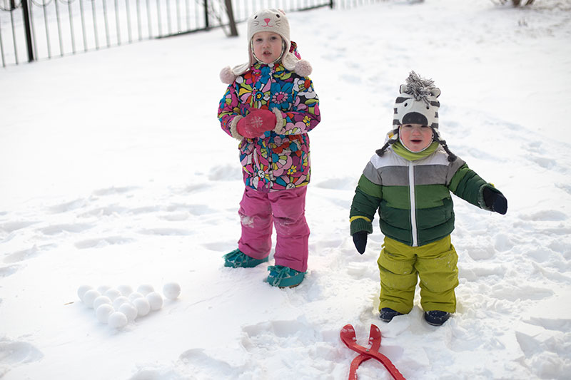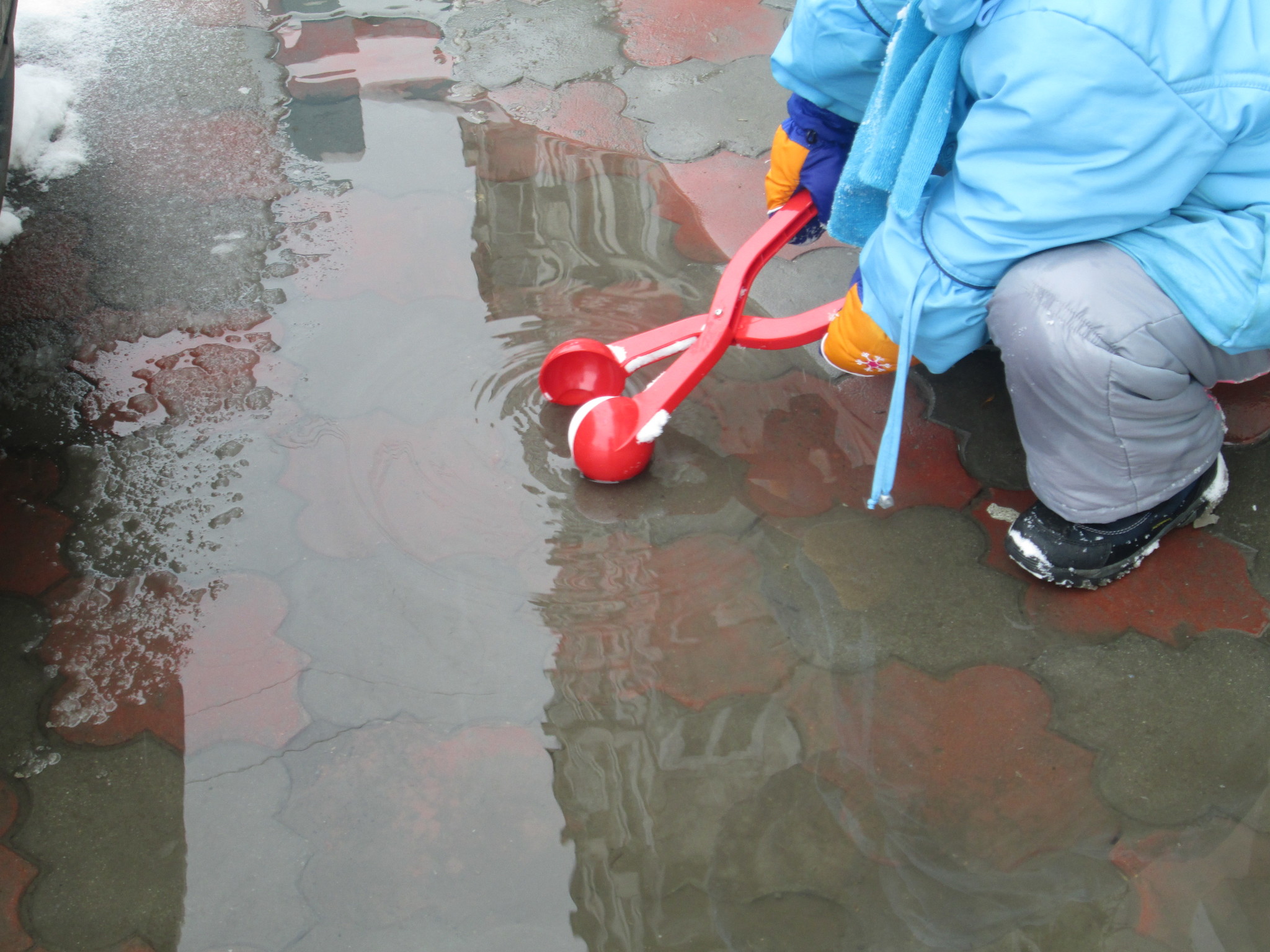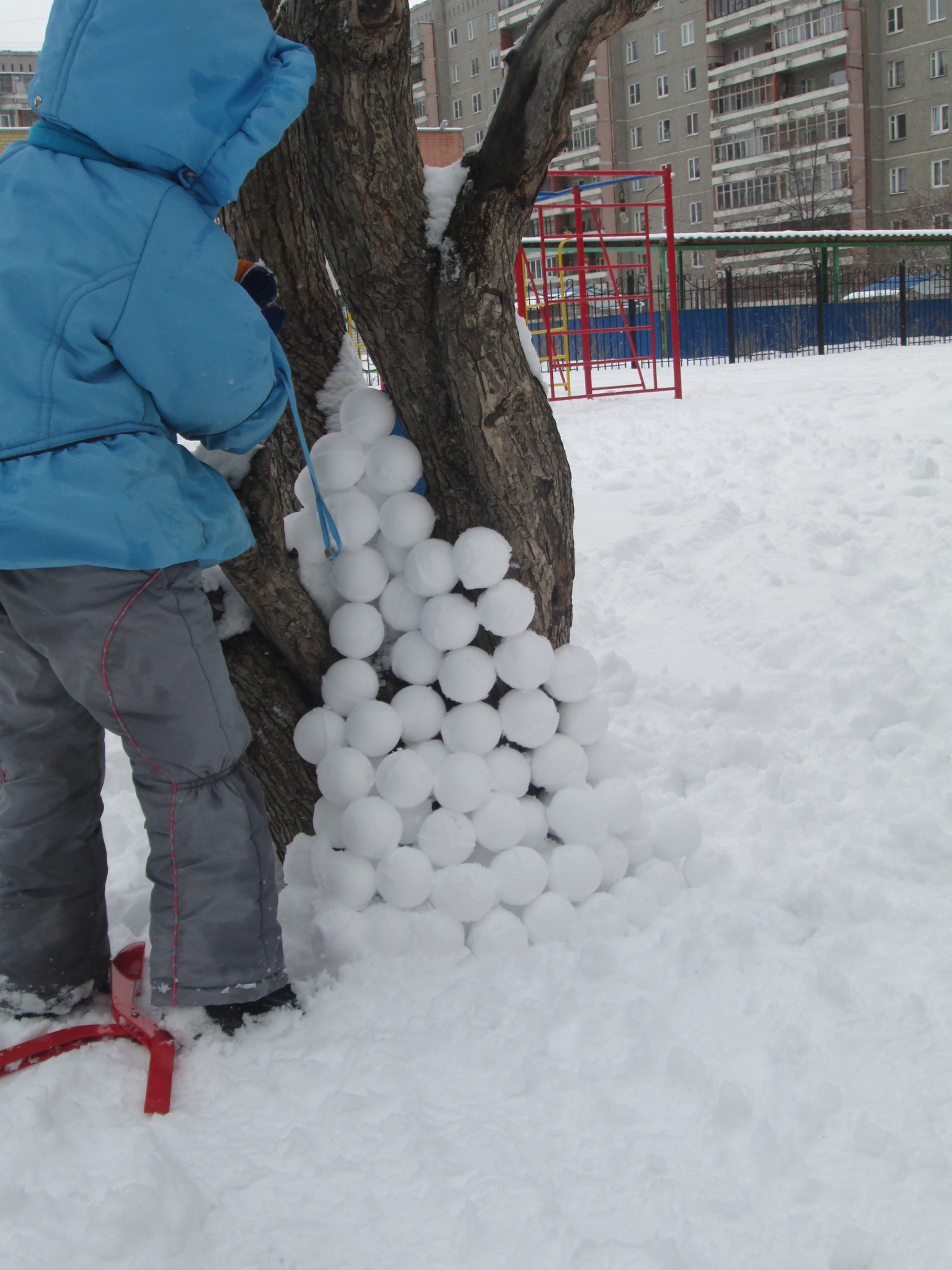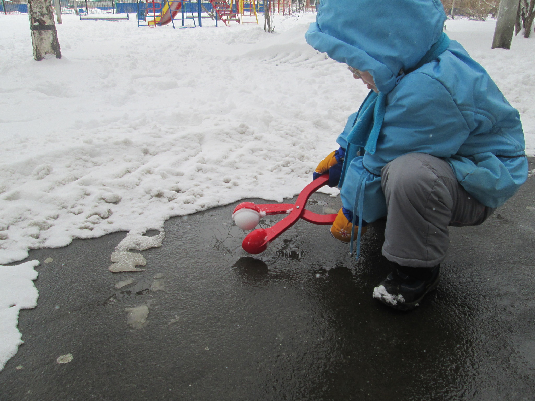снег действительно приятным для лепки был лишь несколько раз за эту зиму. да и мы то болели, то спешили, то ленились фотографировать, но суть не в этом. снежколеп мы таскали в любой мороз с собой. приноровиться удавалось к любым условиям.