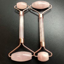 Массажер для лица двусторонний из розового Кварца, с камнями Самоцветами в ручке