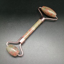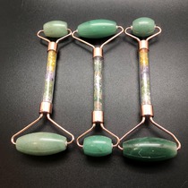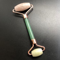 Массажер для лица двусторонний из зеленой Яшмы, розовое золото 03