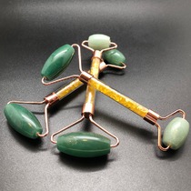 Массажер для лица двусторонний из зеленой Яшмы, золото