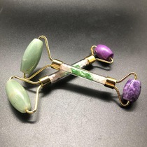 Массажер для лица двусторонний из Чароита и Нефрита, с мелкими камнями в ручке