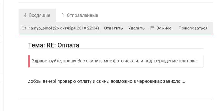 26.10 деньги так и не пришли пишу ей в ЛС
