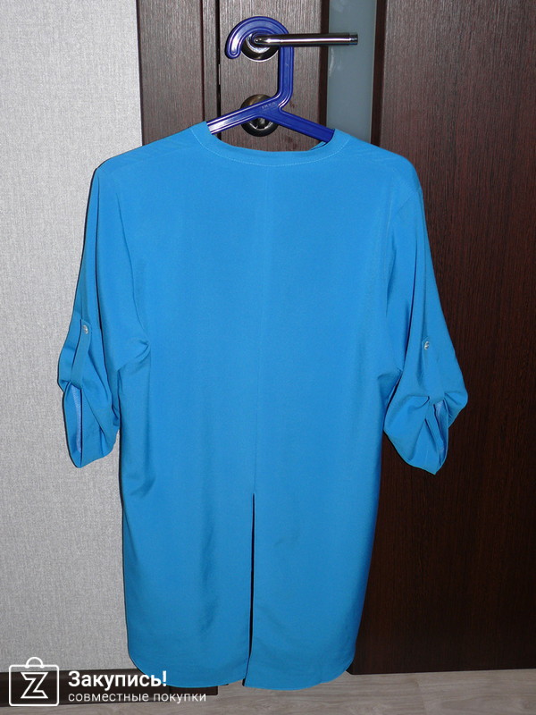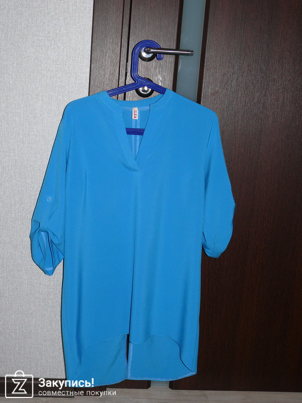 Выкладываю фото блузки Силена, цвет голубой. Заказывала еще лавандовый, но она мне большевата. Она слишком светлая, не такая яркая, как на фото производителя и почему-то мне показалось, что она больше немного, чем эта, хотя размер один. Мама забрала)))
