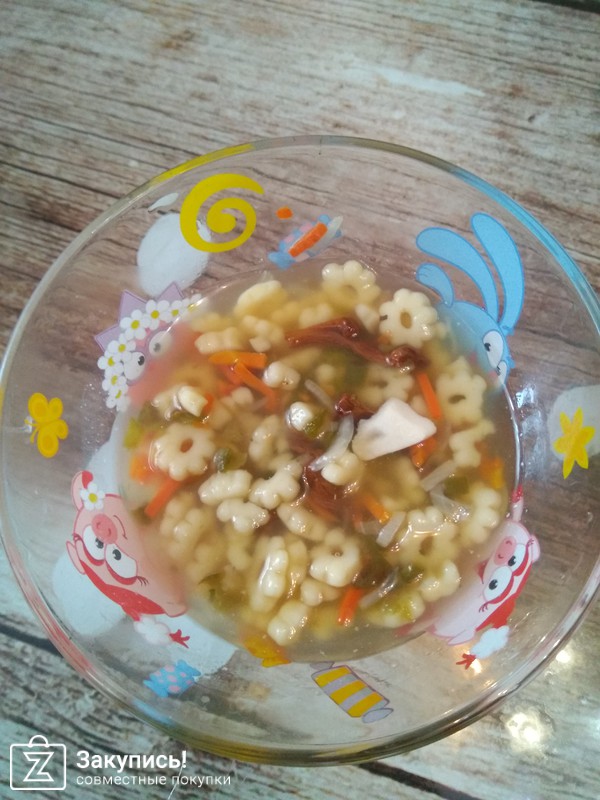 Сегодня готовила на обед французский суп с лисичками и прованскими травами. Варила на воде,чтобы почувствовать весь вкус. Мне очень понравился, добавила в тарелку ещё сметанки и съела аж две тарелки:)))) А вот дети не оценили из-за вкуса трав. Суп содержит прям целые грибы лисички,моркови много, даже зубчик чеснока попался. Натуральный продукт! Рекомендую. Ольге спасибо за вкусную и полезную закупку.