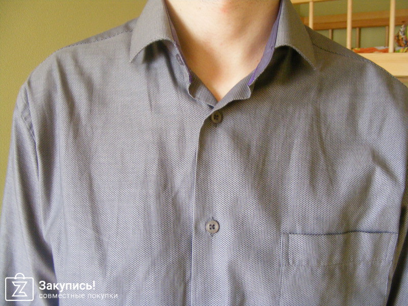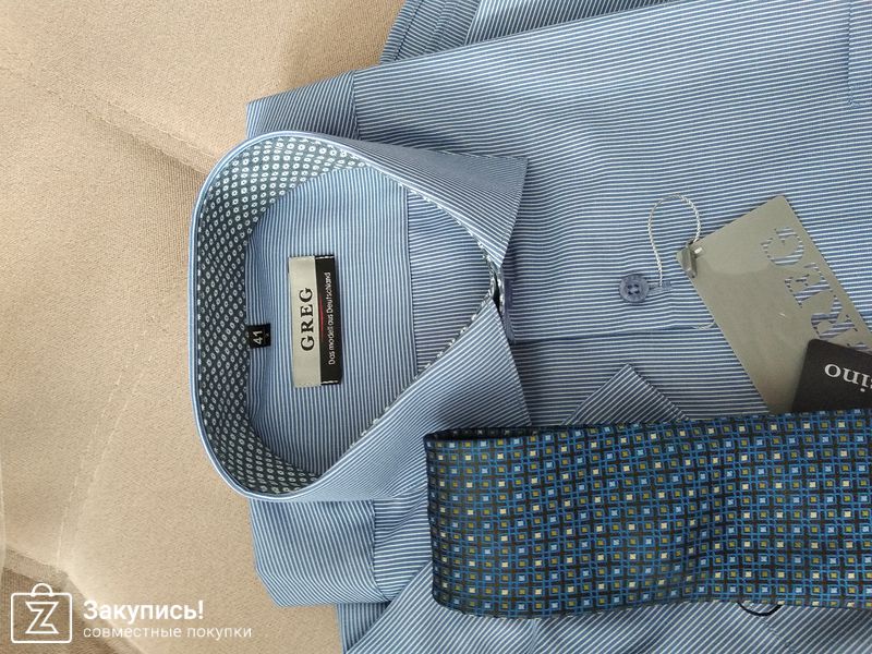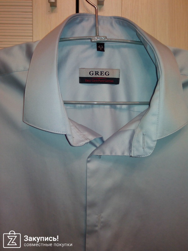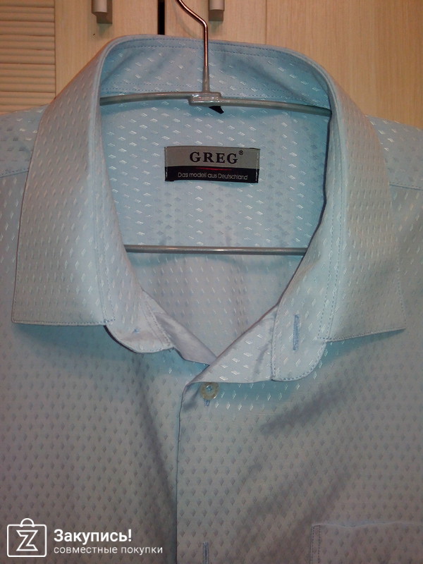 Заказывала мужу сорочку с длинным рукавом Greg (арт. Gb333/131/671/Z/1). Мне понравилось сочетание серого и фиолетового цветов и еще прочитала на сайте, что \"гусиные лапки\" сейчас в моде (сезон осень-зима 2015-2016). Когда муж ее примерил, оказалось, что размер большеват (надо было выбрать 41, хотя смотрела у мужа почти все рубашки 42-го). Цвет мне показался темнее, чем я ожидала. Ткань плотная (для холодного времени года). Качество пошива хорошее: технология немецкая, но русско-белорусский акцент чувствуется. Нагрудный карман смотрится мешковато. В целом, впечатление благоприятное, но муж попросил меня больше ему в интернете одежду не заказывать. На фото: слева - после двух стирок и двух дней носки; справа - фото с сайта.