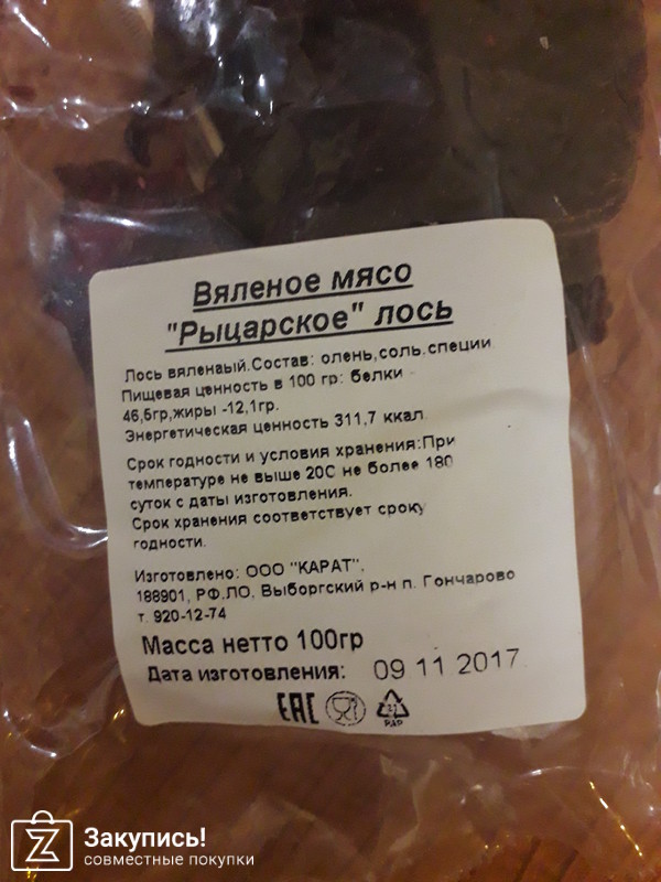 Отличное вяленое мясо, приятная упаковка! Спасибо организатору за закупку!