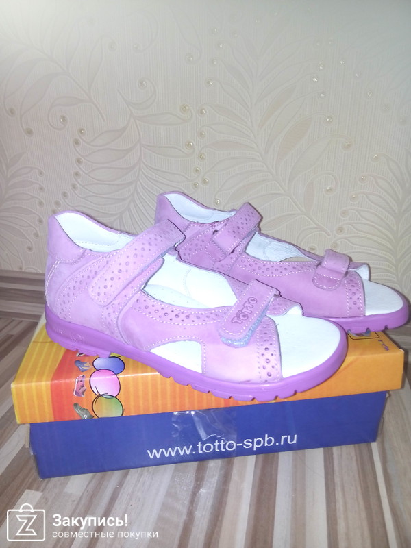 Не первый раз покупаю дочке для детского сада и улицы, сандалии фирмы Тотто -это очень удобная обувь, верх и подкладка натуральная кожа. Задник жесткий, подошва дышащая, подходит для профилактики плоскостопия у ребенка. В этот раз взяла модель 10216 (сирень 021) размер 32- по стельке 20, 5, размерной сетке соответствует.